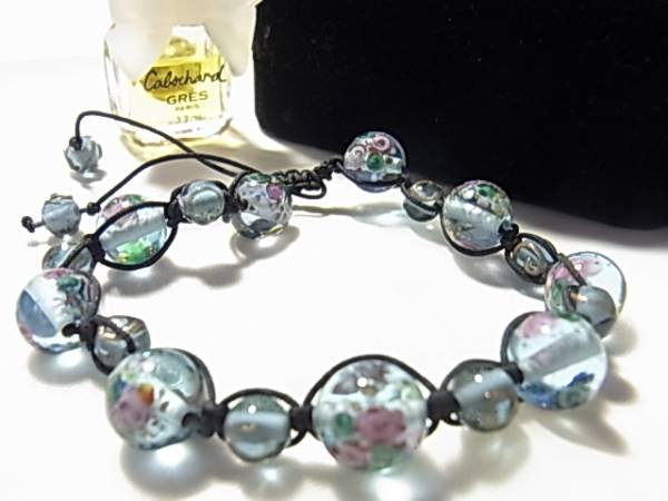 お花柄のガラス調のボールビーズ☆神秘的デザインブレスレット◎