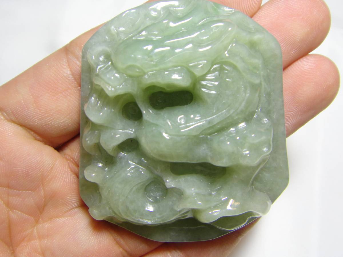 天然本翡翠 A貨翡翠 未処理 大サイズ!! 龍彫り ペンダントトップ 手石