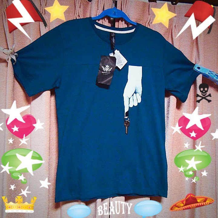 このTシャツは変ったシャツで鍵が付いています。飾りです。