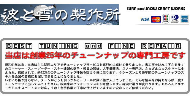 当工房のチューンナップで、スノーボードはおろしたての状態に復元されます。滑りが悪い、エッジがきかない、エッジが 引っ掛かる