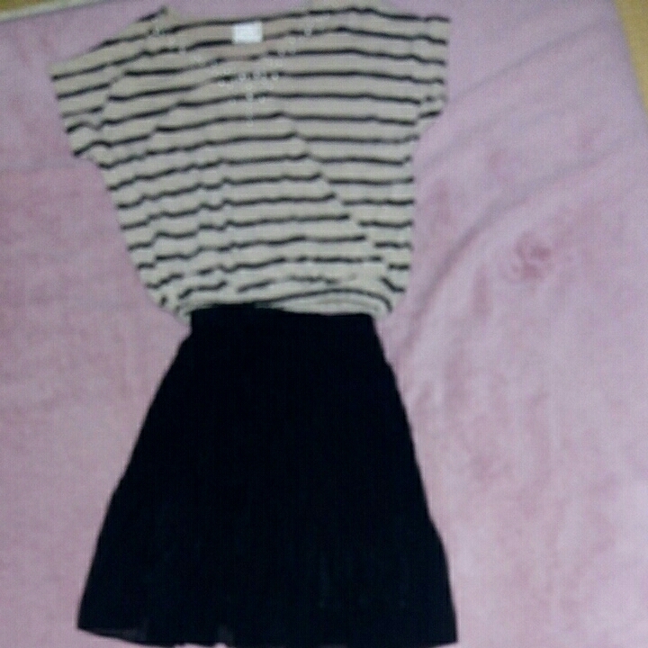 スカートはポリエステルでサラサラした生地、着丈53cm、ウエストはゴムで29cmくらい。