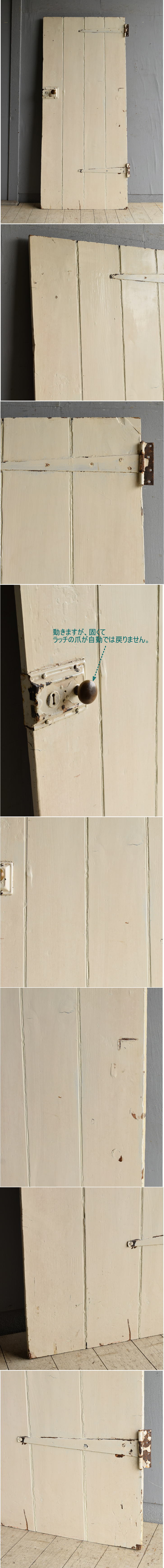 イギリスの古いお家から取り外さた、古い木製ドア(扉)です リノベーション や、 ショップドア にご利用ください。桟、カマチが長年の使用により磨耗があります。 取り付けてご使用の場合加工、調整が必要です。ペイントの劣化は少しづつ進行します。 ご注文時期により現状とは多少状態が違っている場合も ございますので、 ご購入前にお問い合わせください 。 古いものとご理解ください。 大きなダメージ無くコンディション良好です。 送料については商品画像下の送料表参照 らくらく家財Dランク 業者用送料→https://www.doggybag-branch.com/hpgen/HPB/entries/1.html   身     ) サイズ幅83cm 高さ188cm 奥行10cm 厚み5.5cm(横桟含む) 年代年代推定1930~1950年代~