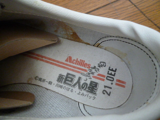 靴屋のデットストック品です。 経年による多少の痛み(内装など)はございますが、未使用です。 普通に子供用としても良いですし、巨人の星のアイテムとしてインテリアとしても良いと思います。 印刷ですが、星飛雄馬のサイン入りです。 古い物なので、なかなか出回らない一品です。 この機会にいかがでしょうか? 送料ですが、多少はつぶれる事もありますが壊れ物でもないのでレターパックプラス 520円とさせていただきます。 |