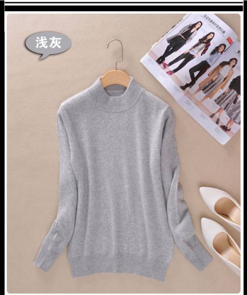 ☆冬暖か着心地の良い婦人用カシミヤ混・ハイネックセーターМグレ☆