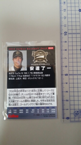 カルビー2014ベイスボールガード029 オリックス 安達了一 です。