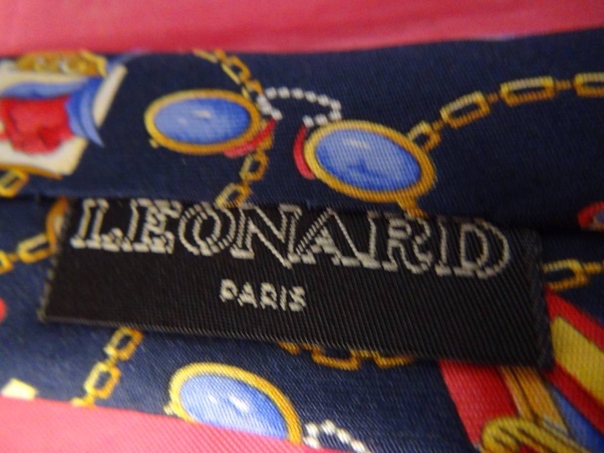 見ての通りのカッコの良い柄の有名ブランドLEONARDのネクタイ、素材はシルク100%、イタリア製