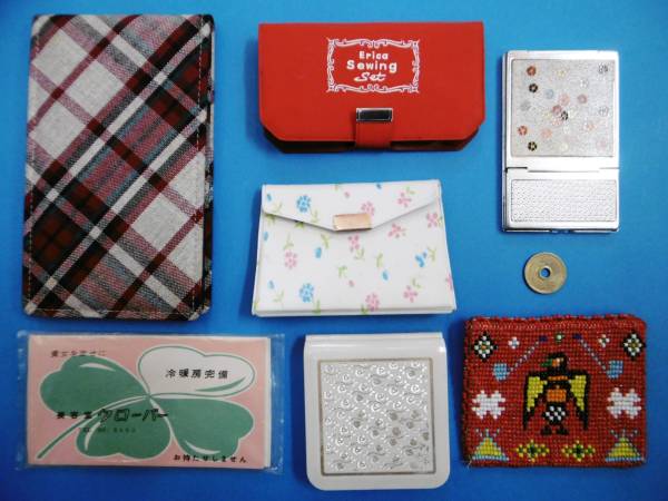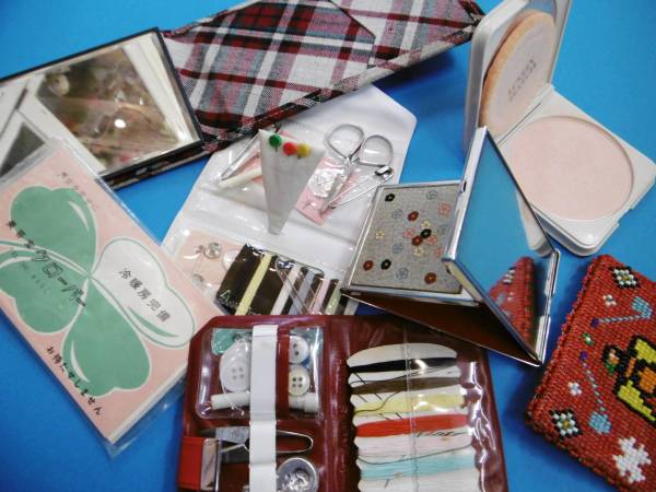 | ★昔のご婦人セット・美容室ちり紙・ジュジュ化粧品・携帯鏡・裁縫セット・ビーズ財布・昭和レトロ★ | |