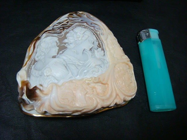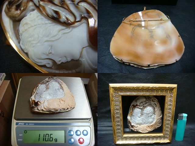 | ご覧頂きましてありがとうございます! とても大きな三層カメオブローチ&ペンダントです。額入りです。 作家はデラグロッタです。大きさは約100mmです。重さは約110gです。 百貨店の催事で100万円以上で購入されたそうです。壁に飾ってお楽しみください。 追加画像がありますのでパソコンでご確認ください。 宝石との出会いは一期一会です。『いいな』と思ったら是非、身につけてあげて下さい。きっと宝石も喜ぶことでしょう! 宝石は決して貴女を裏切りません。身につけた貴女を守ってくれることでしょう。 いつも頑張っている自分へのご褒美にいかがでしょうか? 良いものをひとつお持ち下さい。一生物のジュエリーとなります。 画像での判断は難しいと思いますが、落札後の返品、クレーム等の無きよう、ご自分の自己責任においてご入札下さい。 モニター、パソコン、カメラによって色や感じ方が変わりますのでご注意下さい。 商品についてはコレクター、質屋さん、お客様の委託品が中心ですので、ご質問の答えが遅くなる事がありますがご了承下さい。 商品説明につきましてはすべてをお知らせできませんので、質問にてお願いいたします。 基本的にはUSED品ですので、その点を十分にご理解の上ご入札下さい。 途中で出品を取り下げる場合もありますがご了承下さい。 尚、トラブル回避の為、申し訳ございませんが、新規の方及び評価によってはこちらで入札を削除させていただく場合もございますが、ご理解下さい。 メールの確認は夜になりますのでご連絡が遅くなることもありますがご了承願います。 品物にも人と同じように『こころ』があると思います。喜んでいただけることが私にとっても品物にとっても一番良いことだと思います。 『落札したけど気に入らなかった』ということが無いように十分にお考えになってからご入札下さい。 発送は宅配便を予定しております。また発送には2,3日かかる場合もございますが、ご了承願います。 お互いに気持ちよい取引のため、落札後3日以内のご連絡、5日以内のご入金頂けない場合は申し訳ございませんが取り消しさせていただきます。 落札金額より僅かですが『子ども虐待防止 オレンジリボン運動』へ寄付をさせていただきますがご了承お願いいたします。 | |