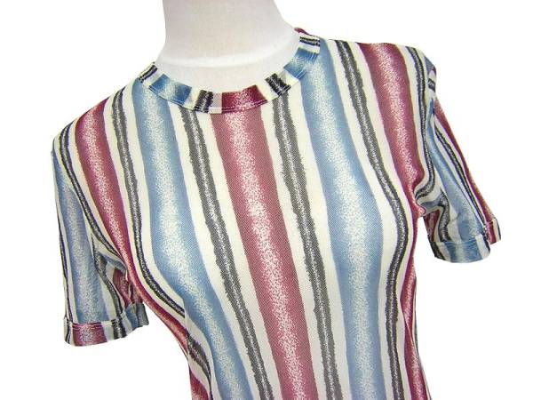 Jean Paul GAULTIER CLASSIQUE のオンワード樫山製、 チュールストライプカットソーでございます。 伸縮性あり/透け感あり | |