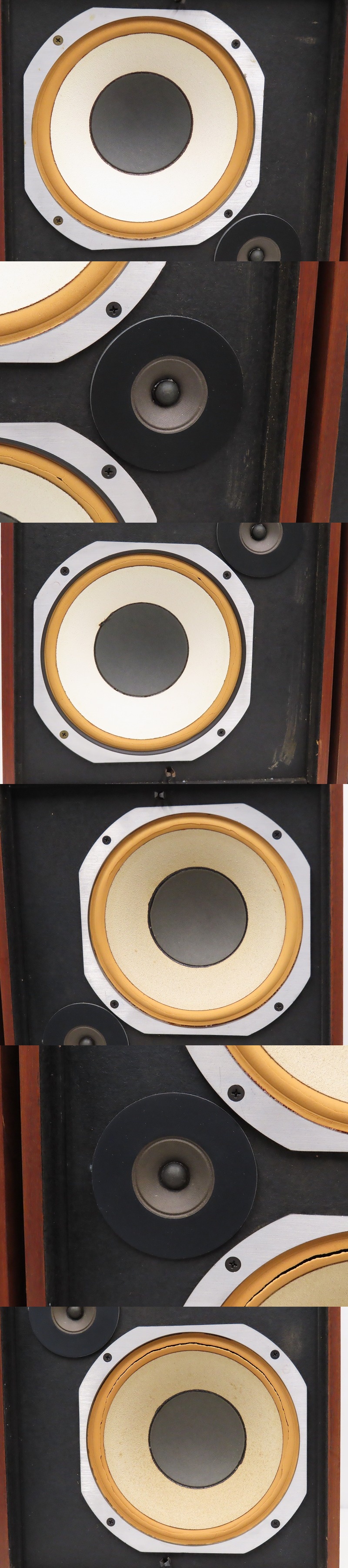 ■メーカー : JBL ■型番 : L77 Lancer ■外径寸法 : W360×H600×D300mm ■重量 : 16.7kg ※弊社実測の為、多少の誤差はご了承下さい。 ※ペアでの出品となります。 【商品の状態 当店での確認内容】 音声出力は確認出来ておりますが、左右エッジが硬化しておりユニット3本は破れております。 エンクロージャーに剥がれ/フロントバッフルに当店では落としきれない汚れございます。また、サランネットのダボ受けが外れやすくなっております。 ※上記により【現状商品】としての出品となります。 「商品の状態」に関しましては当方主観の目安となります。外観などは中古品で個人差もありますので詳細は画像にてご判断ください。 画像にて不明な点はご質問下さい。 出品商品は画像のものですべてになります。画像に写っているもの以外は付属いたしません。 【送料 全国一律 7,200 円 沖縄、離島は別途お見積り】 ※送料がお得になるサービスです(下取りシステムのご案内です) ストア決済利用時にクレジットカードやPayPay残高/PayPayクレジットを利用の方は留意点がございますのでこちらを参照上ご利用ください。 当ストアでは商品を安全にお届け出来るよう提携運送会社と協議の上、発泡緩衝材や強度段ボールの使用等 運送会社が指定する梱包方法や資材を採用しております。 より安全にお届け出来るよう商品仕様により梱包サイズが大きくなる場合や個口数が増える事がございます。 【当ストアオークションルールを入札前に必ずご確認ください。】 【落札後の取引手順】 ・落札後は取引ナビにて、必要事項をご入力後、送信ください。 取引終了後48時間(土、日は除く)以内に入力をお願い致します。 ※ご連絡が頂けない場合は落札者様都合でのキャンセルとさせていただきます。 ・落札代金(商品代金+消費税+送料)の入金をお願い致します。 ※大型商品の場合は送料確定後の決済となる為取引ナビを入力頂き、当ストアより送料のご案内が来るまでお待ちください。(土曜、日曜、祝日の場合は翌営業日より順次ご案内いたします) ・お支払い方法はクレジットカード/PayPay残高/PayPayクレジット/PayPay銀行/ゆうちょ銀行のみです。 ※商品代金引換(代引き)のお取り扱いはしておりません。 ※領収証の発行が必要な方はご連絡ください。 ※銀行振込の際の振込手数料はご負担願います。 ・入金確認後に出荷手配を致します。 (原則入金確認後3営業日以内に発送いたしますが、大型や重量のある製品はお時間をいただく場合もございます。) ・発送は当店指定の運送会社の元払いのみでの発送となります。 ※他の運送会社、送料代引き等は致しかねます。 ※落札者様ご自身での運送会社の手配いただく事も可能ですが荷物事故の責任の所在の問題上、梱包は致しかねます。 ※店頭にお越し頂き手渡しも可能(福岡市早良区)です。ご希望の方はご落札後にご連絡下さい。 ・大型/重量物商品の送料につきましては商品の特性上、荷降ろし状況等により送料が大きく前後し運送業者に別途見積りが必要な為、早めのお問い合わせにてお見積り上、入札をお願い致します。 【初期不良の保証について】 ・商品到着後の初期動作不良、また配送中の事故による破損、不具合が有る場合は、商品発送後10日以内に当ストアまでご連絡ください。当ストアでは修理での対応を優先させて頂きますが、修理不可の場合は全額返金させて頂きます。 (商品代金+消費税+送料のお支払い頂いた金額となります) 【初期不良の保証の対象外について】 次の場合は保証の対象外となりますのご留意ください ・ジャンク商品、現状商品、難あり商品での出品商品。 ※難あり商品に関しましては動作確認時に一部動作不良が確認された商品になり、記載している動作確認以外にも、動作不良がある可能性もございます。こちらに関しましても保証対象外となりますことをご理解ください。 ・年代物のオーディオなどで、当店にてわからない範囲で部品が交換されている場合 ・楽器類の特殊機材(マイクロスコープ等)での確認までは行っておりません。気になる方は事前にご質問いただくか、入札をお控えください。 ※初期不良に関しましては【商品の状態】に記載のもの、またそれによって起因する動作不良は対象外です。 ※商品発送後10日を過ぎてのご連絡は対応が出来ませんので、商品が到着しましたらお早めに確認をお願い致します。 【メーカー保証の加入・継承】 ・未使用品、展示品やメーカー保証期間が残っている商品に関しまして、メーカー保証の加入、継承が必要な方は、落札後取引ナビ内にて当ストアにお知らせください。商品発送までにご連絡いただけない場合、メーカー保証の手続きを承れない場合があります。 【評価について】 ・評価不要の場合、必ず取引ナビの「要望欄」にてお知らせください。それ以外でご連絡をいただいた場合、対応できない可能性がございます。一度行った評価はシステム上取り消しが行えませんのでご了承ください