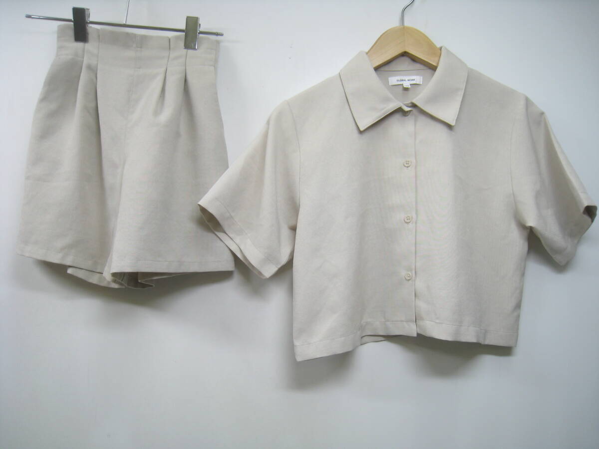 GLOBAL WORK グローバルワーク キッズ 子供 シャツ ショートパンツ ハーフパンツ セットアップ 上下 ベージュ サイズ140/130