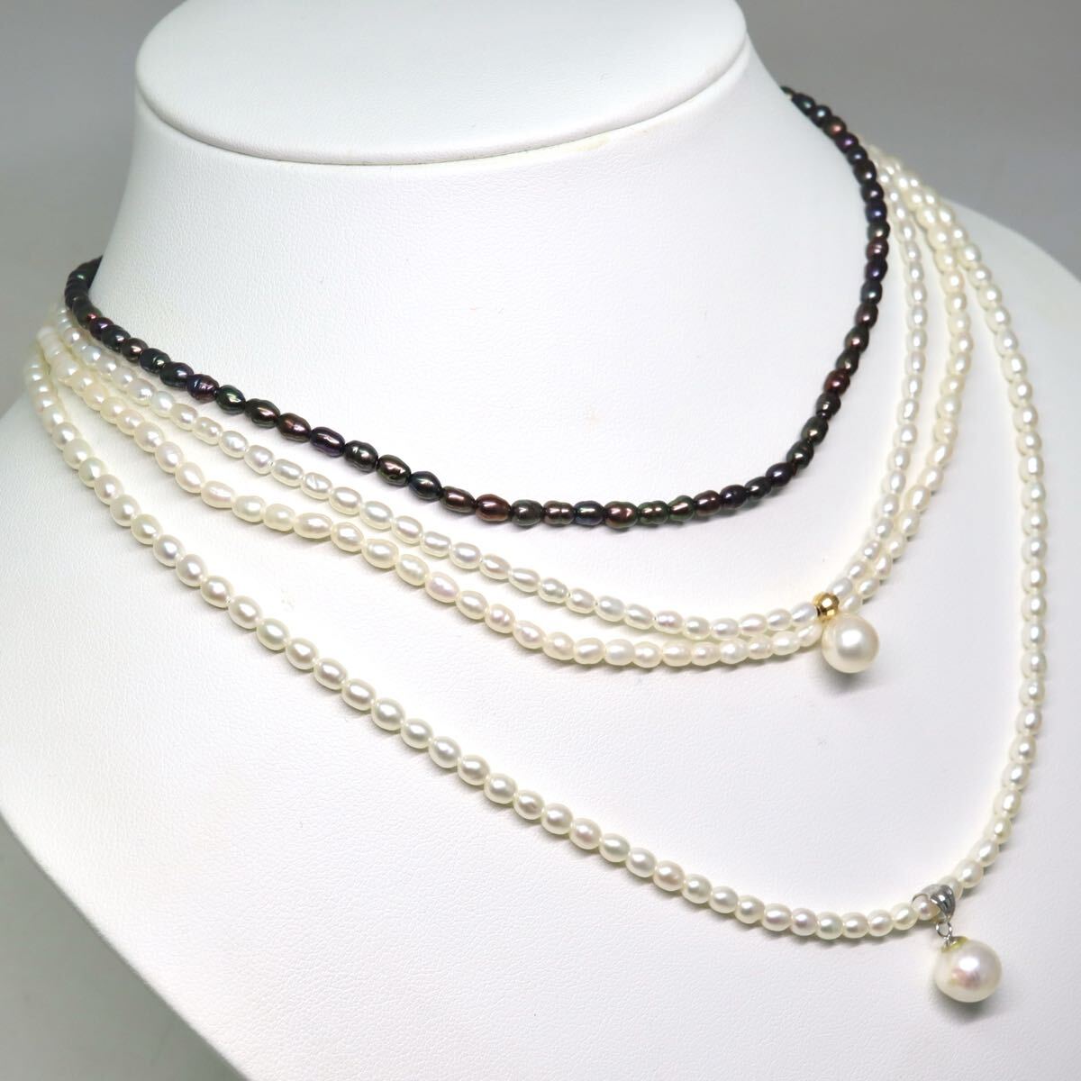 〈アコヤ本真珠トップ付き!!本真珠ネックレス4点おまとめ〉
