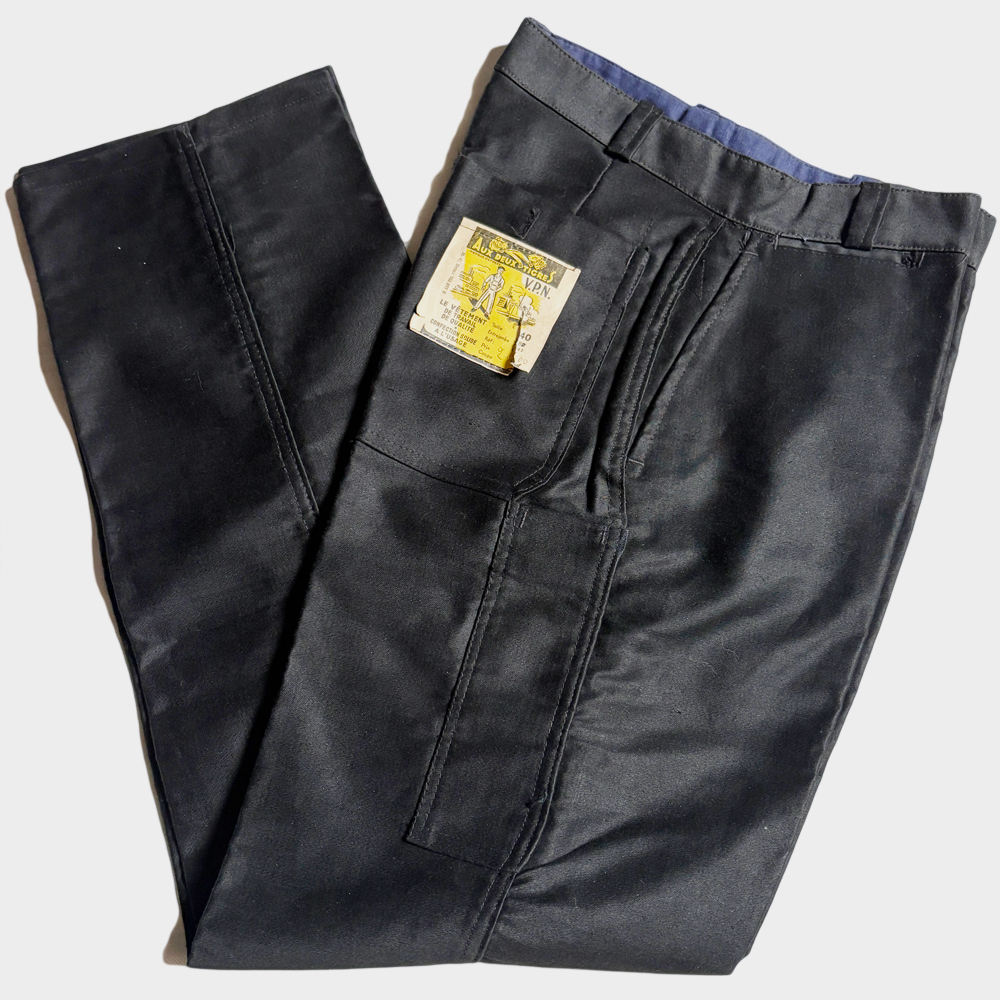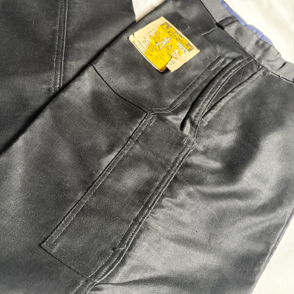 フラッシャー付きの完全デッドストック ! 推定40年代後期~50年代頃と思われる、フレンチワークの代表的なブラックモールスキンチョアトラウザーズ が入荷。しかもノリもしっかりと残った、完璧デッドストックコンディションです。