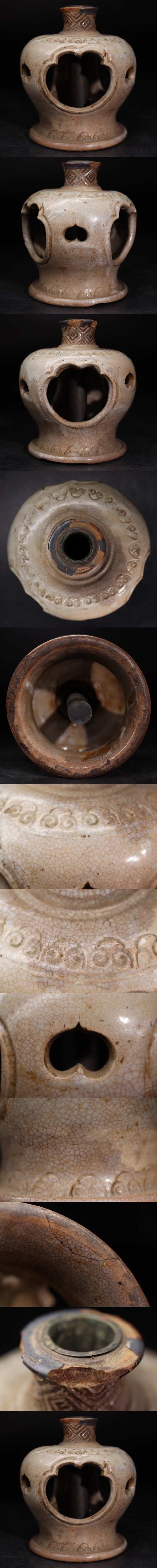 | 時代 白釉 哥釉 透かし彫り 香炉 / 香道具 煎茶道具 検索: 中国美術 哥窯 李朝 高麗 .G2888 |