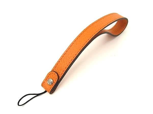 ■美品■ BONAVENTURA ボナベンチュラ レザー 携帯ストラップ キーホルダー レディース メンズ オレンジ系 DG1678