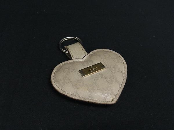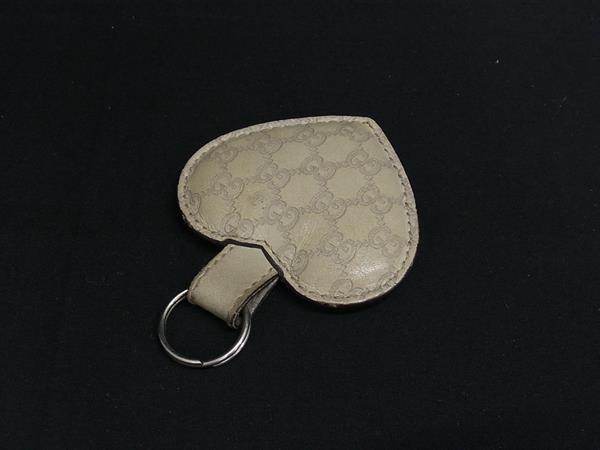 GUCCI グッチ シマ GG柄 レザー キーホルダー ストラップ バッグチャーム レディース ベージュ系 DI3077