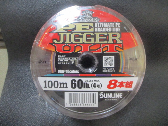 サンライン PEジガーULT8本組 60lb100m巻・6連結 新品未使用!