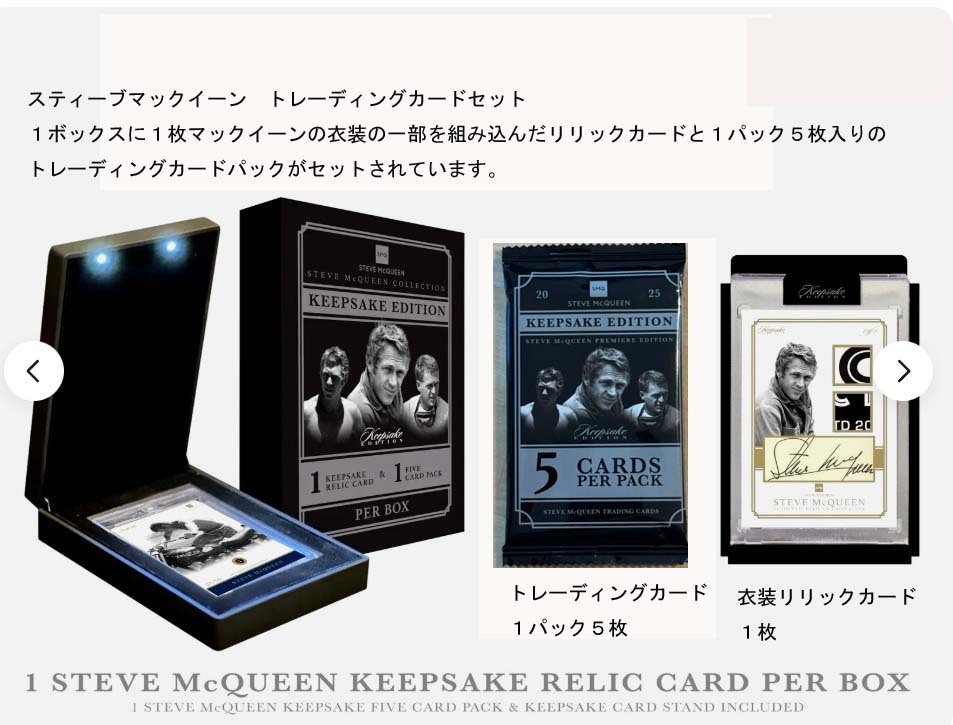 1ボックスの必ずマックイーンの1枚のリリック(衣装)カードとトレーディングカード1パックが入っています。