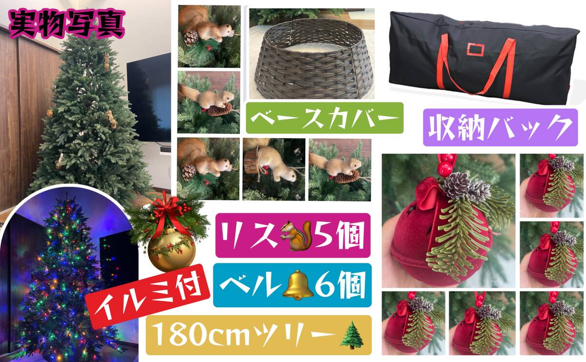 【2025年版】リスマスツリー 大型180cm 最高峰クオリティク イルミ巻済 収納バッグ カバー リス5個 ベル6個360度立体PE高級素材 自動落下