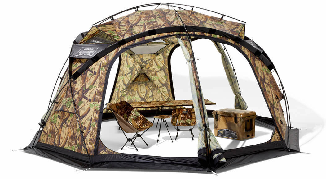 ミリタリーとアウトドアの絶妙な融合で数々の名作を生み出してきた「NEIGHBORHOOD(ネイバーフッド)」と「Helinox(ヘリノックス)」コラボ。オリジナルのリアルツリーバック迷彩柄で統一されたほか、ハイエンドなシェルターです。