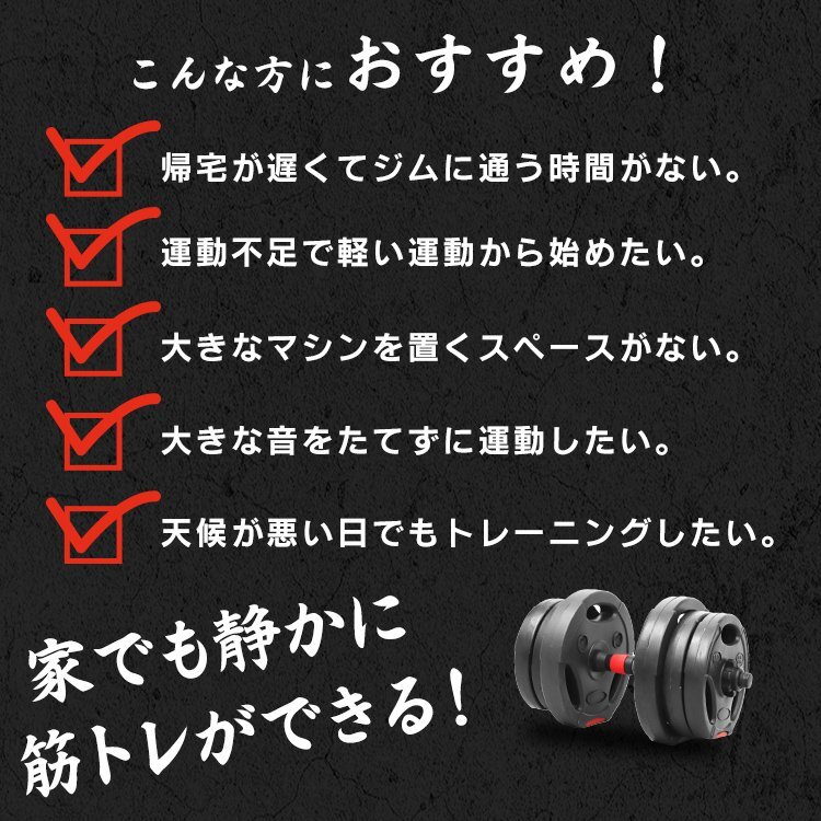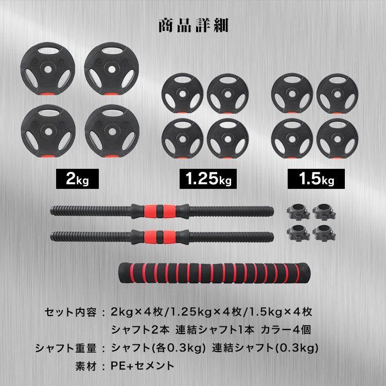 これ1つで理想の体型に!!! エクササイズから本格的な筋トレまで カスタマイズ可能な安心設計のダンベル!! こんな方にオススメ!!! ・帰宅が遅くてジムに通う時間がない ・運動不足で軽い運動から始めたい ・大きなマシンを置くスペースがない ・大きな音をたてずに運動したい ・天候が悪い日でもトレーニングしたい 【商 品 詳 細】 ブランドWM FITNESS 【内容】 ・2kg×4枚 ・1.25kg×4枚 ・1.5kg×4枚 ・シャフト2本 ・連結シャフト1本 ・カラー4個 【サイズ】 1.25kg:(約)19×3cm 1.5kg:(約)19×3cm 2kg:(約)23×3.7cm シャフト部分:(約)40.5×3.5×2.5cm 連結シャフト部分:(約)40×4.5cm カラー部分:(約)6×2.5cm 【カラー】 ブラック 重量20kg シャフト:0.3kg 連結シャフト:0.3kg 材質PE セメント 可変式ダンベル ダンベル 2個セット 可変式バーベル バーベル 40kg 筋トレ グッズ シェイプアップ トレーニング 調節可能 ジム ダイエット エクササイズ 腕 肩 ダンベル 可変式 40kg 2個セット プレート 可変式ダンベル バーベル 可変式バーベル 筋トレ グッズ トレーニング ダイエット エクササイズ 滑り止め付き ジム 重さ調節 腕 肩 背筋 胸筋 自宅 調節可能 シェイプアップ 滑りにくい 【注意事項】 ・当商品を使用した場合に事故・破損が発生した場合は責任を負いかねますので予めご了承ください。 ・仕様・デザインは改良のため予告なく変更することがあります。 |