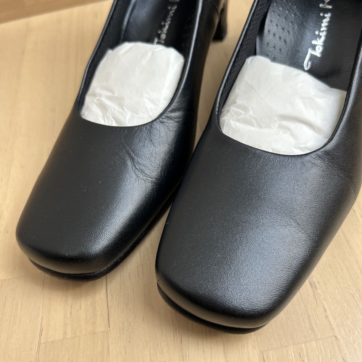 サイズ23 レディース トキミ神戸 パンプス ブラック 黒 レザー 靴 ローヒール トップ四角