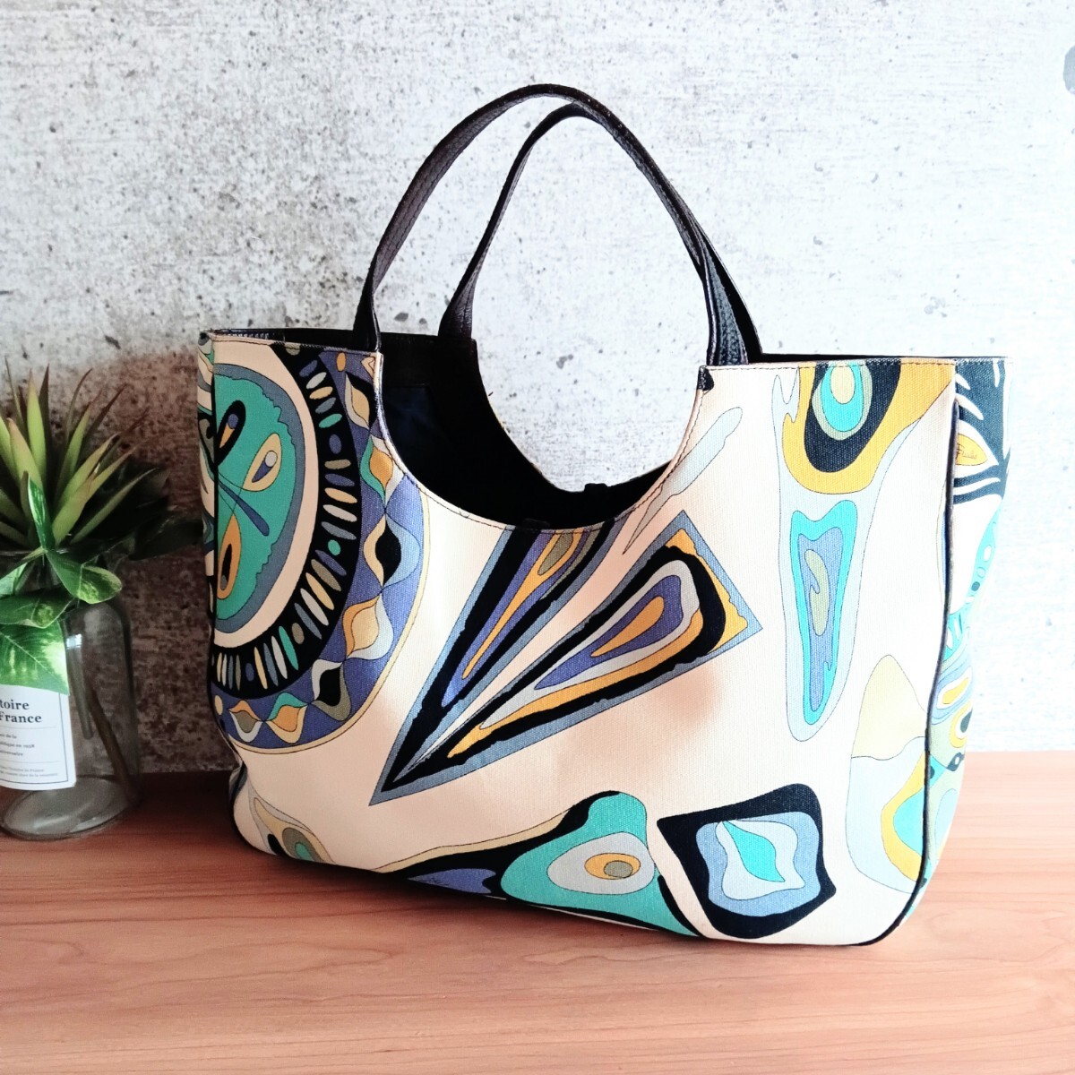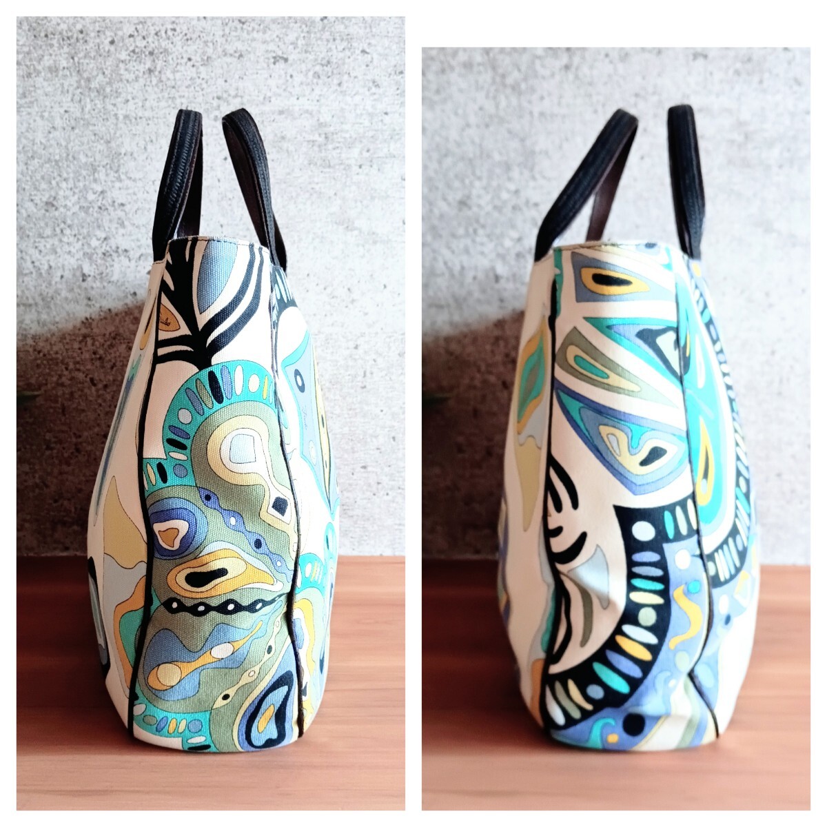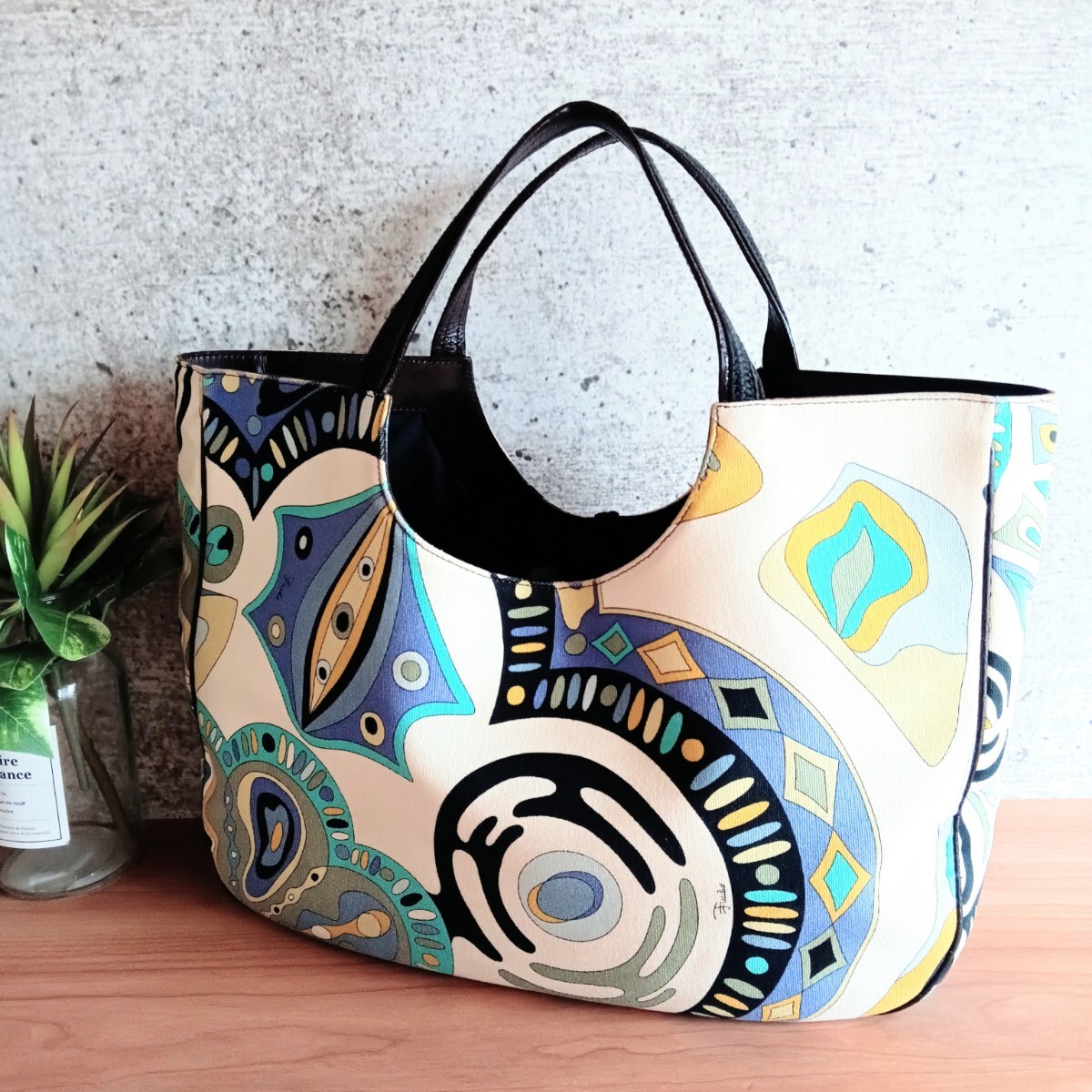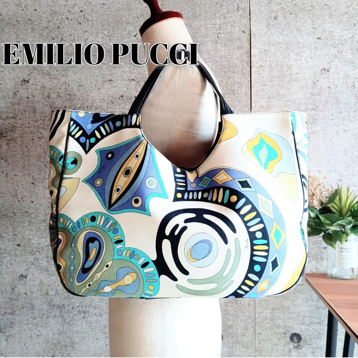 【商品】 EMILIO PUCCI エミリオ プッチ ヴィンテージ 総柄 キャンバス 本革 レザー トートバッグ 大容量 ハンドバッグ 肩掛け 手提げ 腕掛け 鞄 オールド VINTAGE イタリア鞄