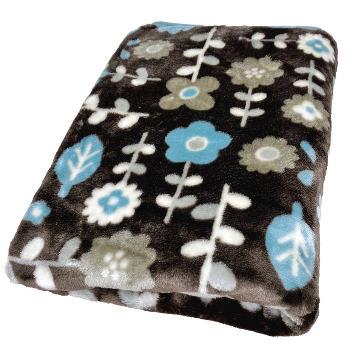 極ぬく あったか ニューマイヤー ハーフケット ポプリII ブラウン 100cm×140cm フランネル 軽量 厚手 秋 冬用