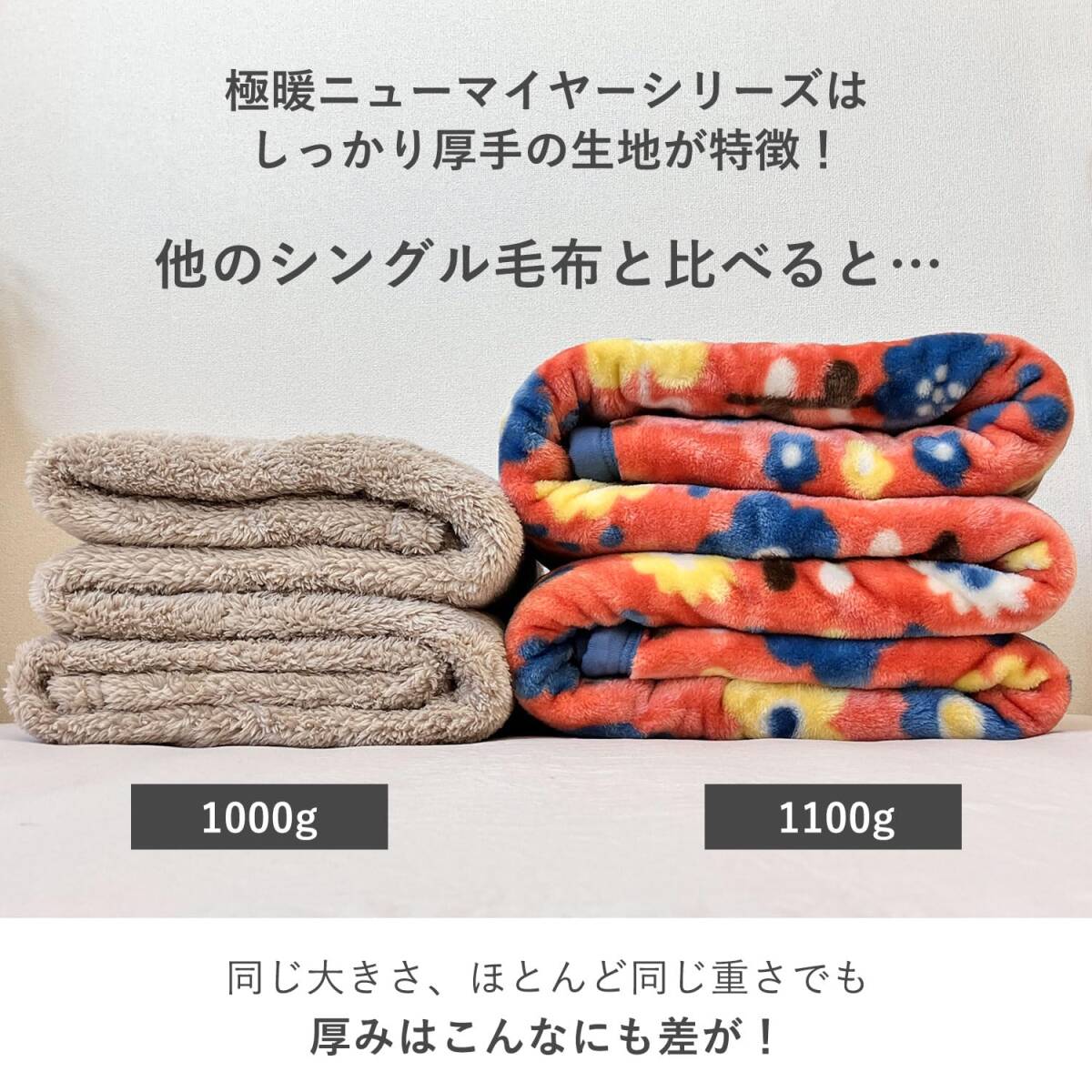 ・【しっかり厚手!でもとっても軽い! 極ぬく毛布!】 極ぬくニューマイヤー毛布シリーズはしっかり厚手の生地が特徴! 2枚毛布にも負けないあたたかさ!でもとっても軽いから、重い毛布にありがちな寝苦しさもなく快適! 老若男女を問わずご使用いただけます。