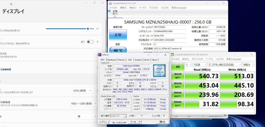 | CPU: 超高速 Intel 高性能 第8世代Core i5-8365u 1.6Ghz、 4コア8スレッド (ターボ・ブースト利用時の最大周波数 4.1GHz) |