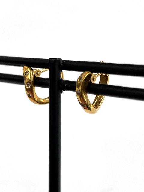 | この度は当店の商品をご覧頂き誠にありがとうございます。 18金製のデザインピアスが入荷致しましたのでご提案させて頂きます。 小ぶりなフープ型のピアスに少しダイヤモンドを添えたお洒落な一品です♪ 癖のないデザインで使いやすいピアスに仕上がっております! 【状態】 若干の小傷、使用感はございますが目立つような大きなダメージはなく良好な状態です。 | |