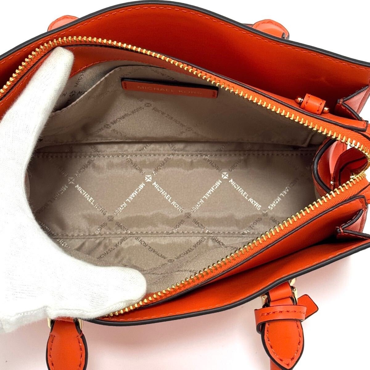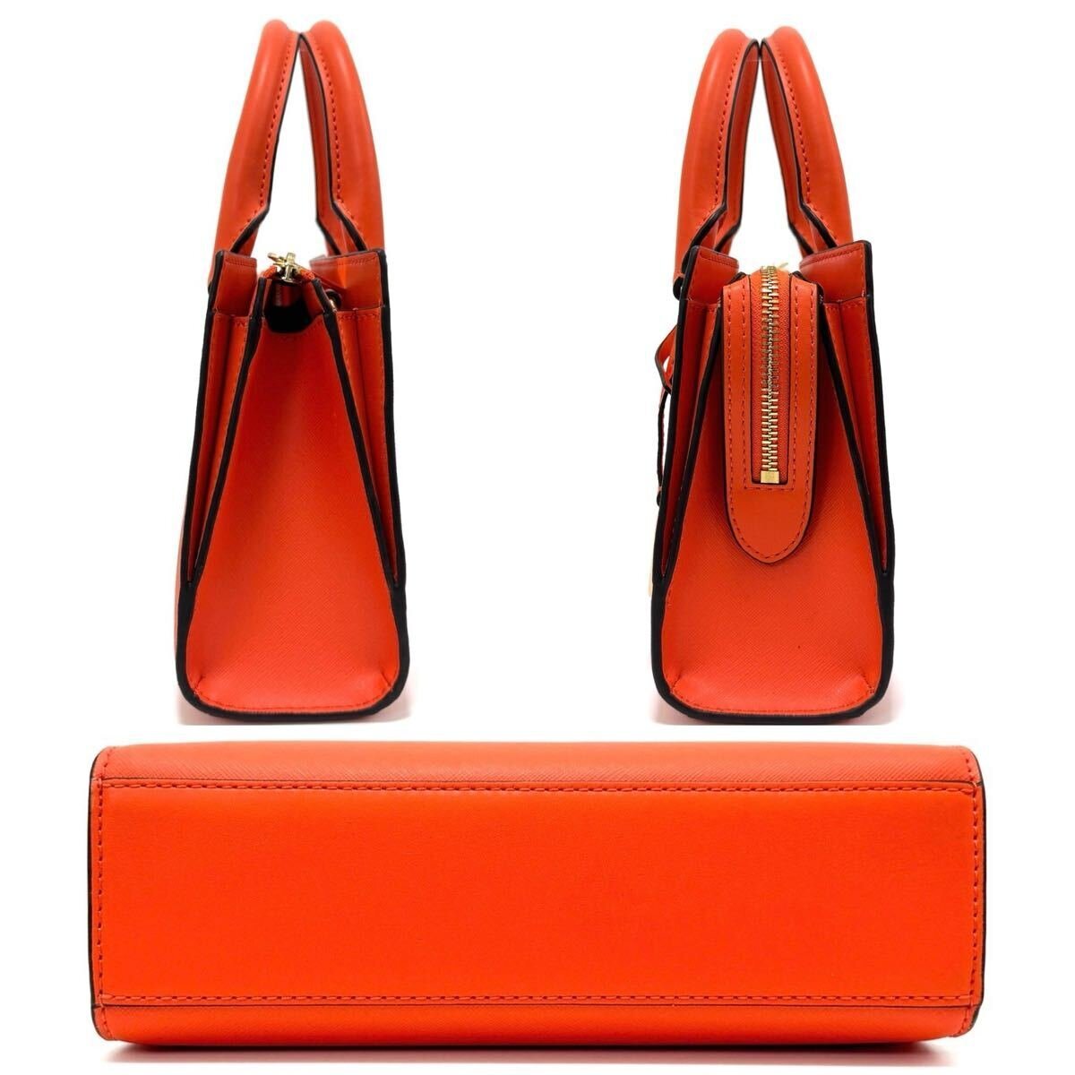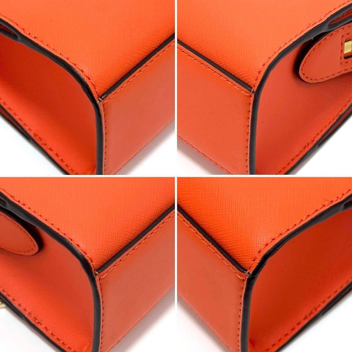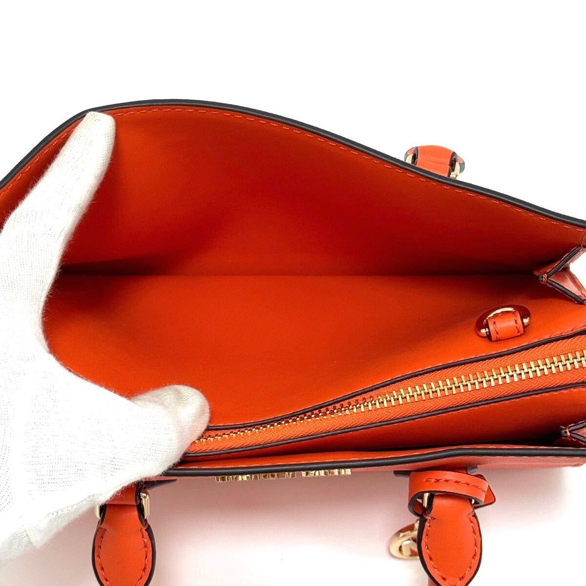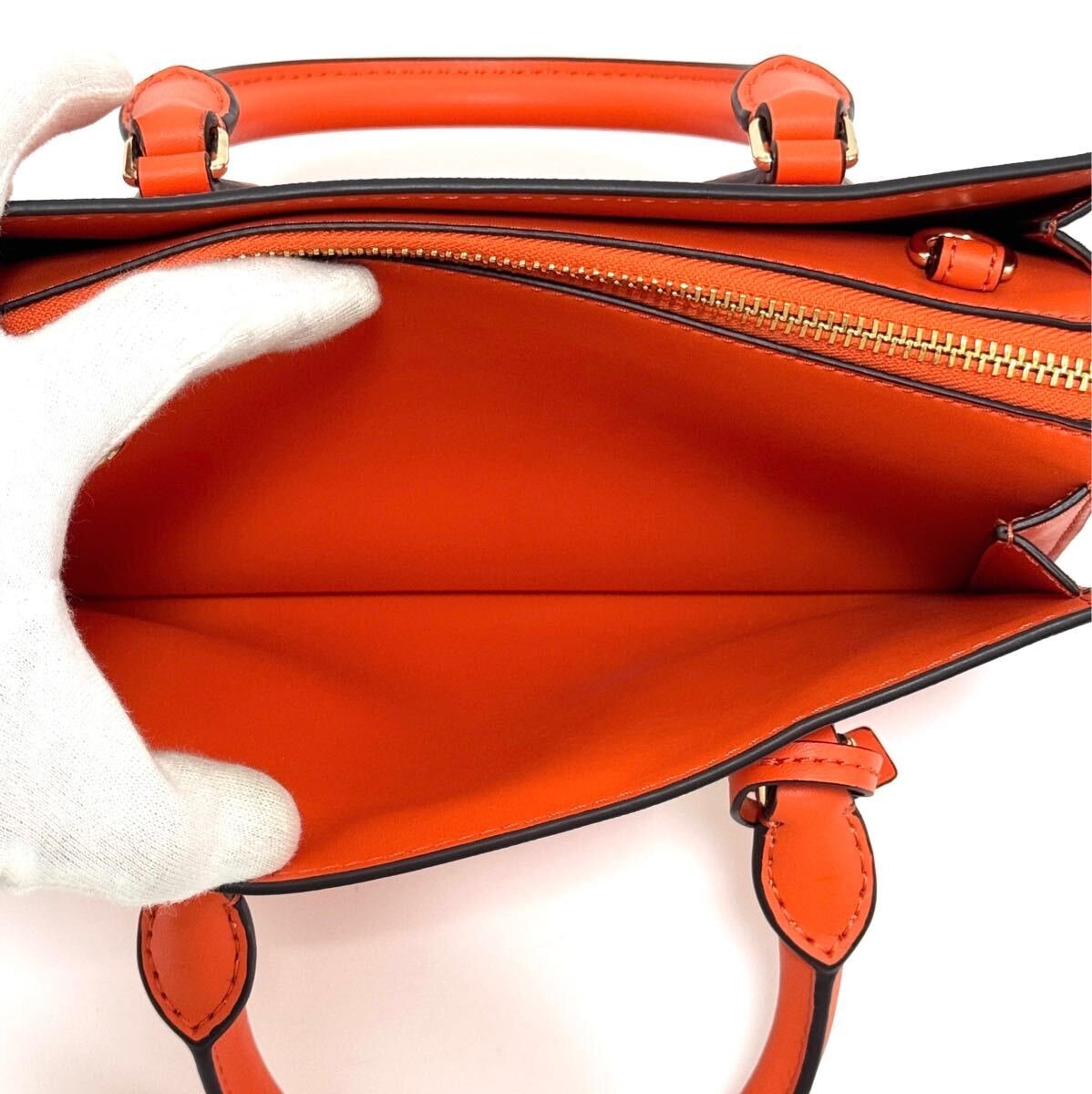 オールレザーのオレンジのボディにゴールドのロゴチャームが上品な2wayバッグです♪ 持ち運びがしやすいサイズながら外側にもポケットが付いているので荷物もしっかり収納することができます! |