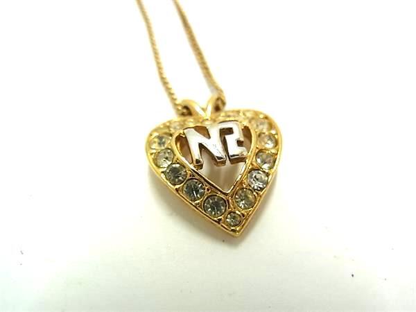 ■美品■ NINA RICCI ニナリッチ ラインストーン ハート ネックレス ペンダント アクセサリー レディース ゴールド系 DI3029