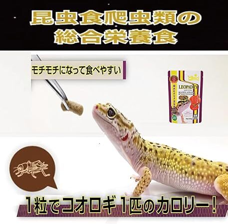 ●幼体の場合は、毎日、生体には2、3日に1回が目安です。(食べないときは、姉妹品のレオパゲルと組み合わせて与えてみてください。)