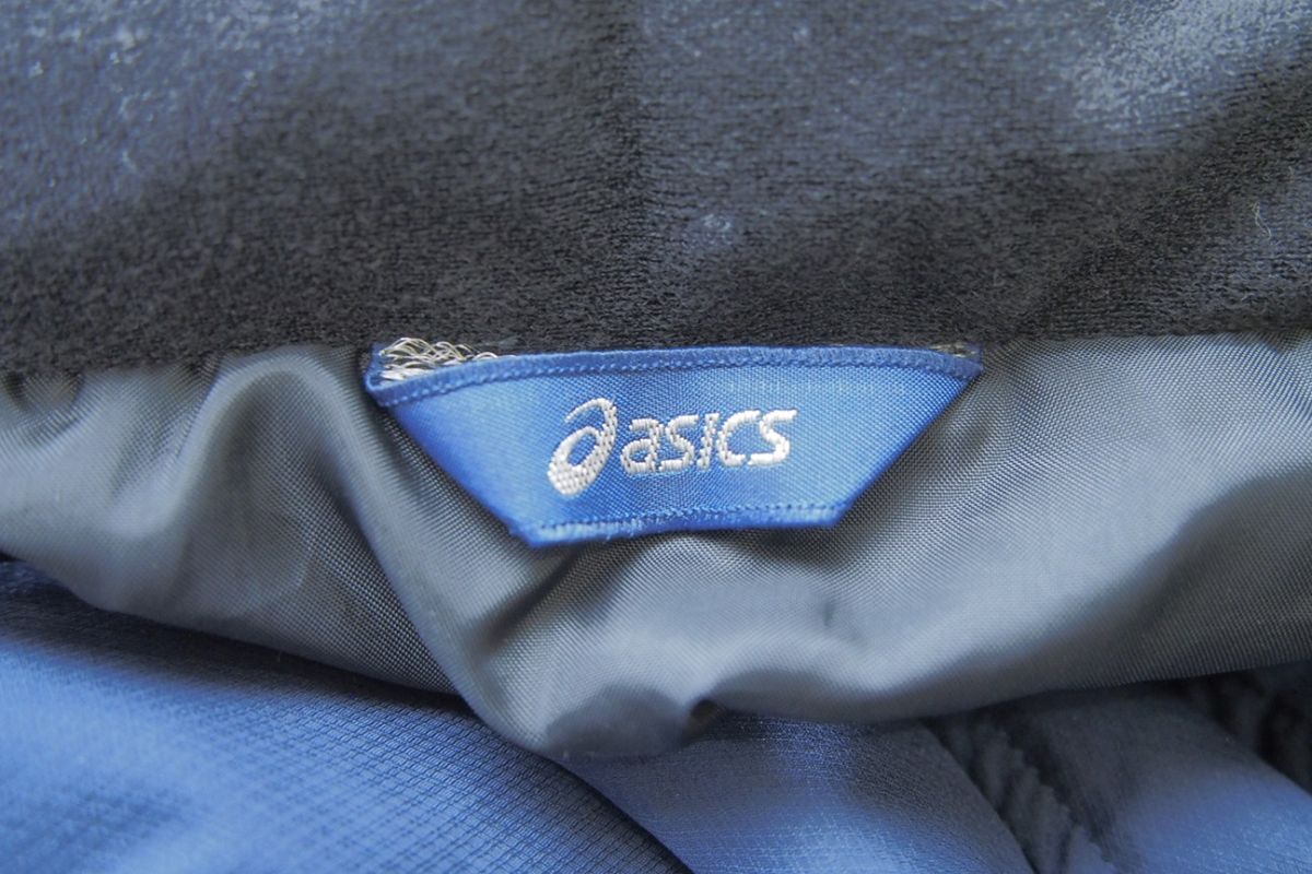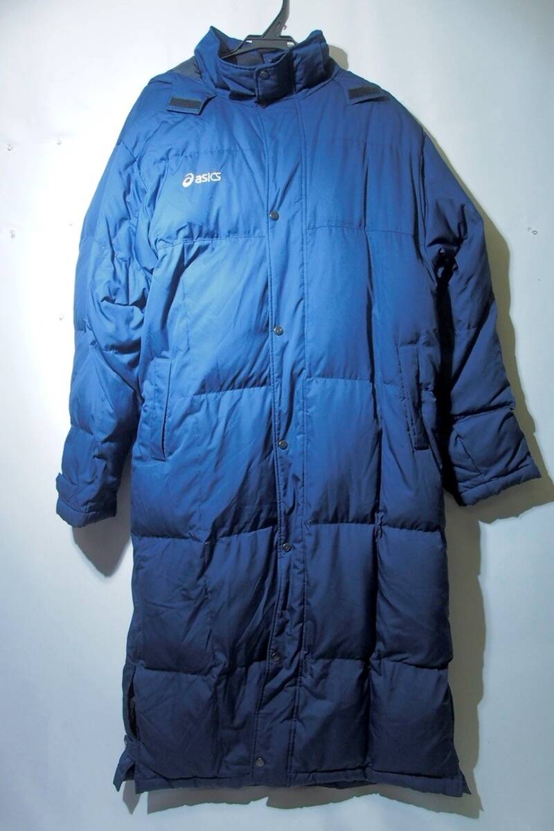 r2_5628k 美品 アシックス 内ポケット付・サイドスリット入り・上下開きファスナー ダウンベンチコート サイズO 中箱