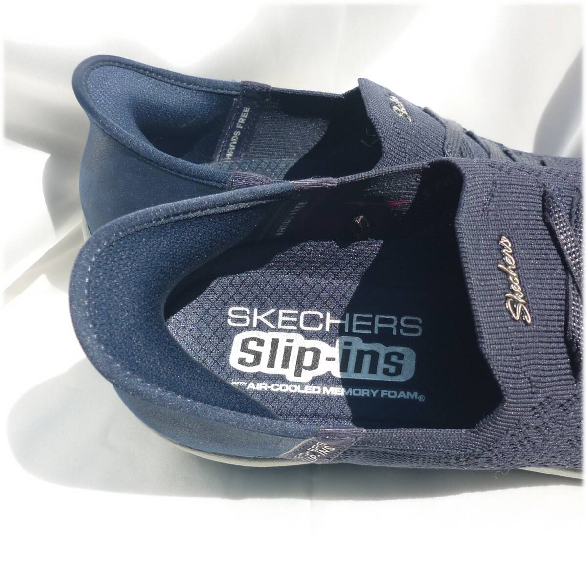 新品未使用品です話題のスリップインズです。かがまず、かかとを持たず、ハンズフリーでスルリと着脱可能です。◎スリップインズ愛用者の感想です。ご参考に。「かかと部分にクッションがあり、きっちりフィットするのでとても脱げにくく感じる」「かかとをふまないので靴がかた崩れがせず長持ちする」さりげないスタイルと抜群の履き心地を兼ね備えた、Skechers Hands Free Slip-ins(スケッチャーズ ハンズフリー スリップインズ):アーリア - スウィフトリー。Heel Pillow(ヒールピロー)デザインを採用したヴィーガン(動物由来成分を含まない)シューズ。Stretch Fit(ストレッチフィット)ニットのアッパー、固定式ストレッチレース、クッション性のあるSkechers Air-Cooled Memory Foam(スケッチャーズ エアクールドメモリーフォーム)インソールが特長です。独自のHeel Pillow(ヒールピロー)で足をしっかり固定クッション性のあるSkechers Air-Cooled Memory Foam(スケッチャーズ エアクールドメモリーフォーム)コンフォートインソールStretch Fit(ストレッチフィット)のデザインで靴下のような快適さを実現履きやすいNo-Tie Fit(ノータイフィット)固定型ストレッチレースフロント、ストレッチニットのアッパーフレキシブルでトラクション性の高いアウトソールヒールの高さは3.2cm(1 1/4インチ)洗濯機洗い可能スケッチャーズ正規品(直営店で購入) 品番158918 定価10890円 509サイズ感:小さめ。0.5cm大きめをご検討下さい。(個人差がございますので、あくまでも目安ですが今までにご購入いただいたお客様はそれで丁度よかったとの声をいただいております)★商品タグは25.5cmですが25cmのカテゴリーに出品しております。