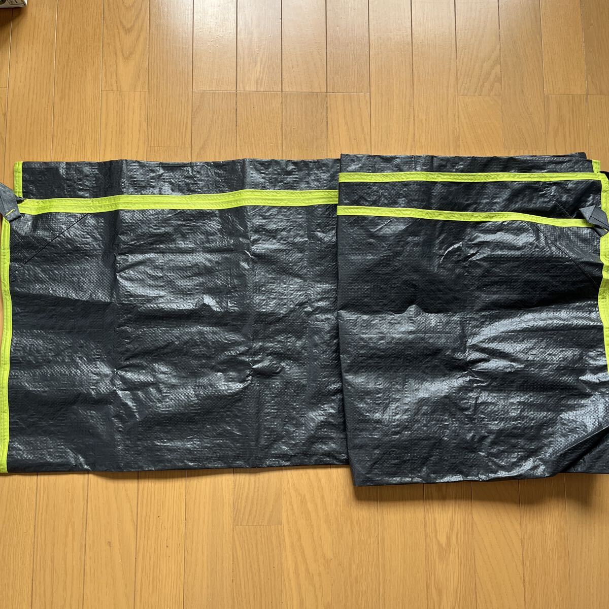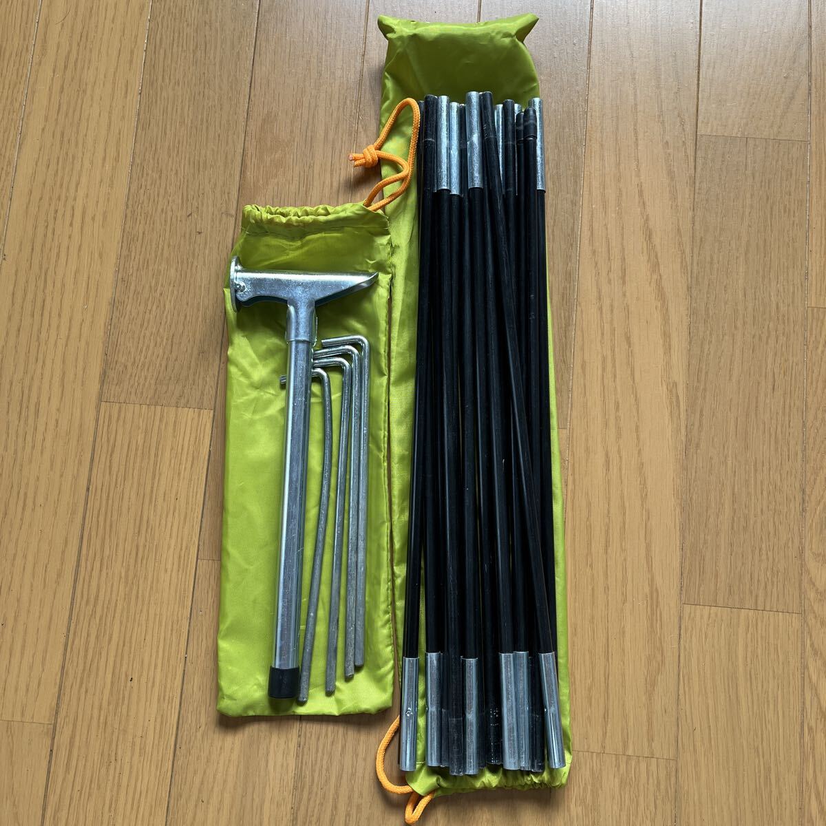 中古品の為ノークレームノーリターンでお願いします。3回ほど使用しました。サイズ幅210x奥100x高110㎝重量2.4㎏。テント下に引くグランドシート付。