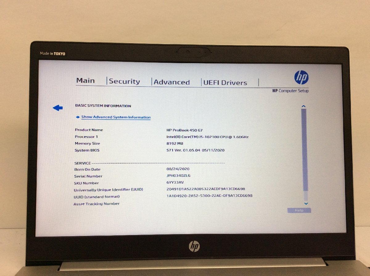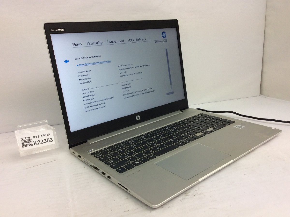 ジャンク/ HP HP ProBook 450 G7 Intel Core i5-10210U メモリ8.19GB NVME256.06GB 【K23353】