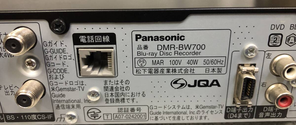 Panasonic/パナソニック HDD/ブルーレイディスクレコーダー DMR-BW700 HDD初期化済み ジャンク品です。