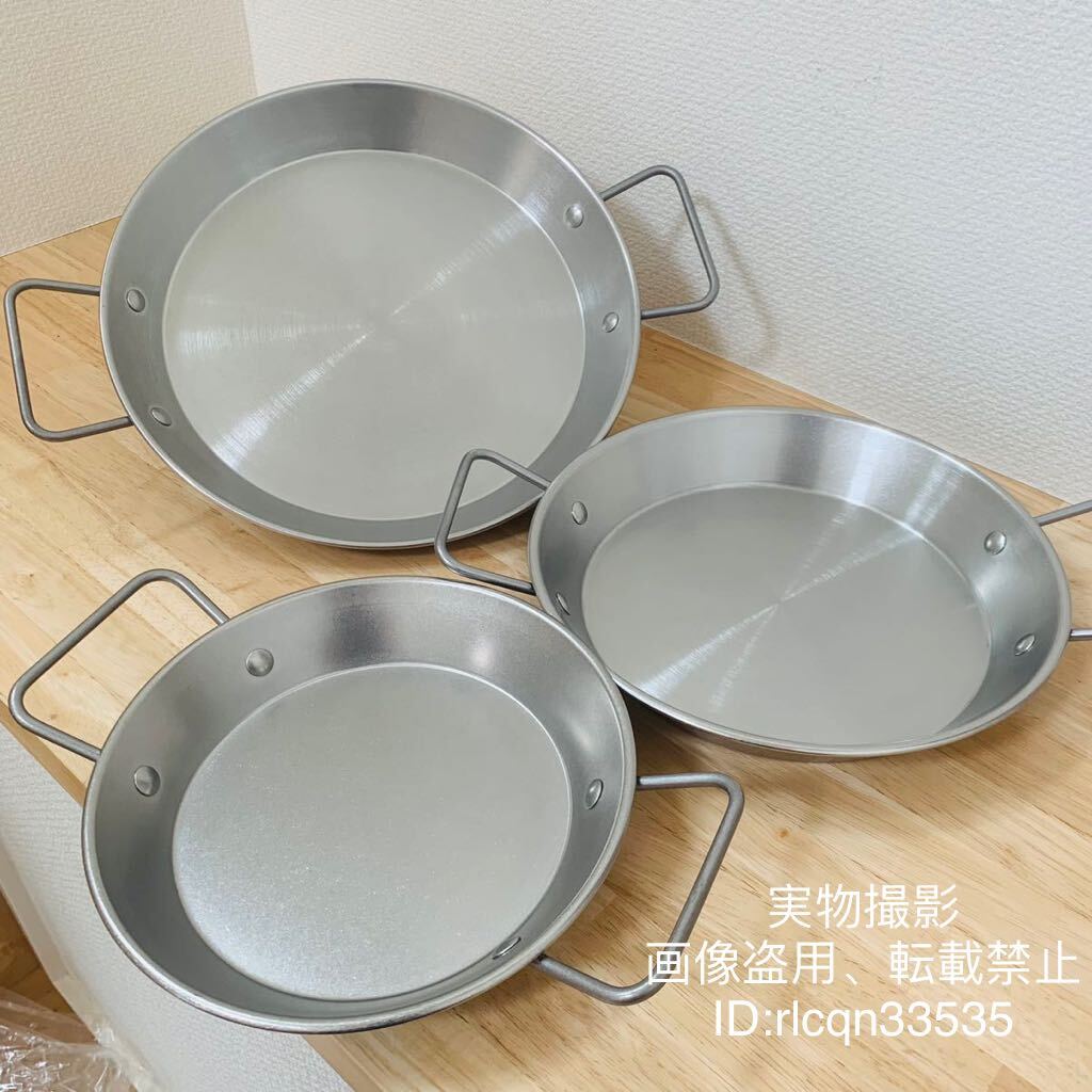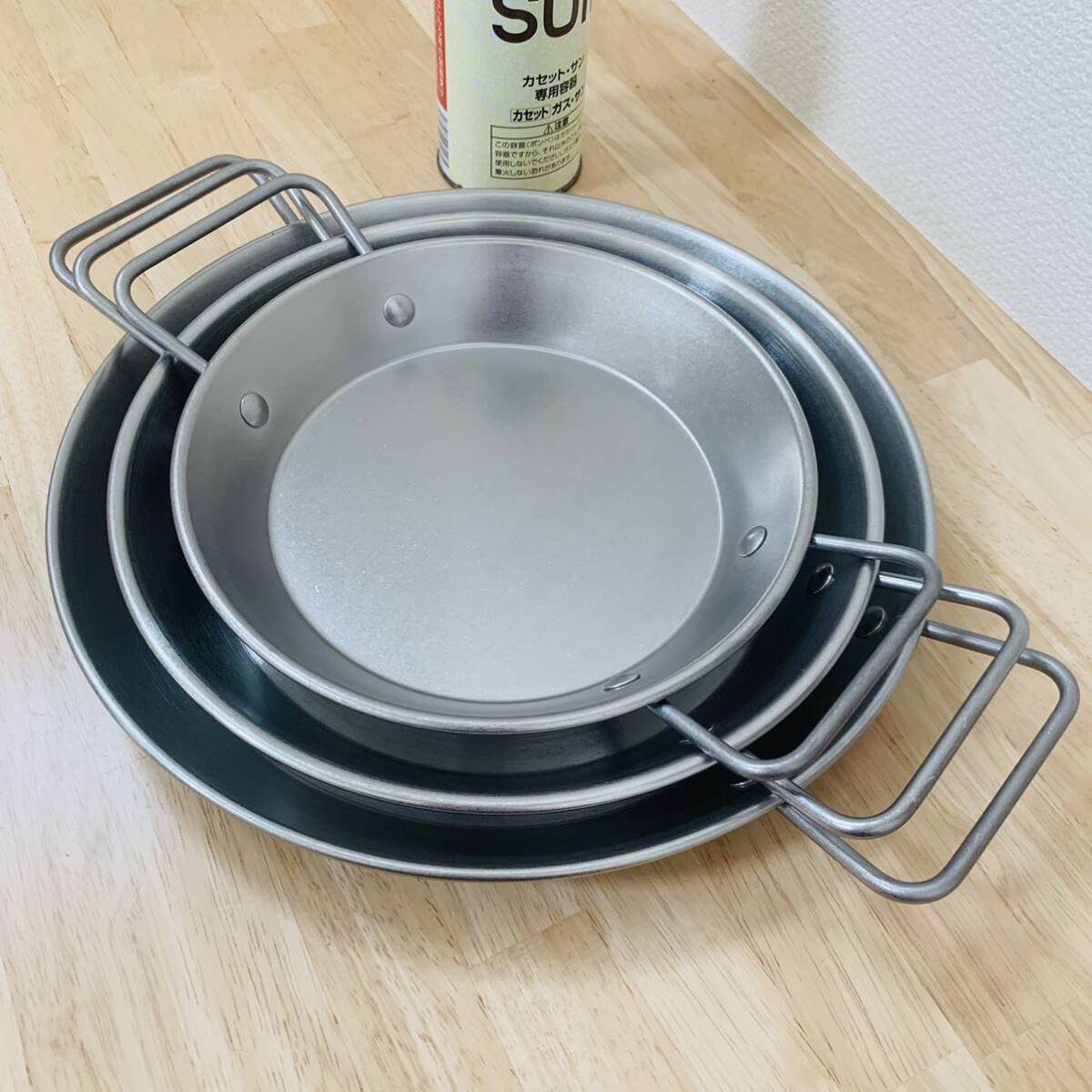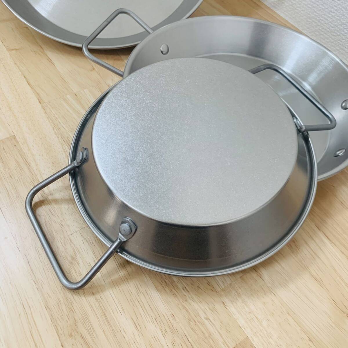 超高品質 ステンレス製 焼き鍋 お皿 3点セット 直火 HI 頑丈 アウトドア キャンプ用 野外登山 20cm 24cm 28cm