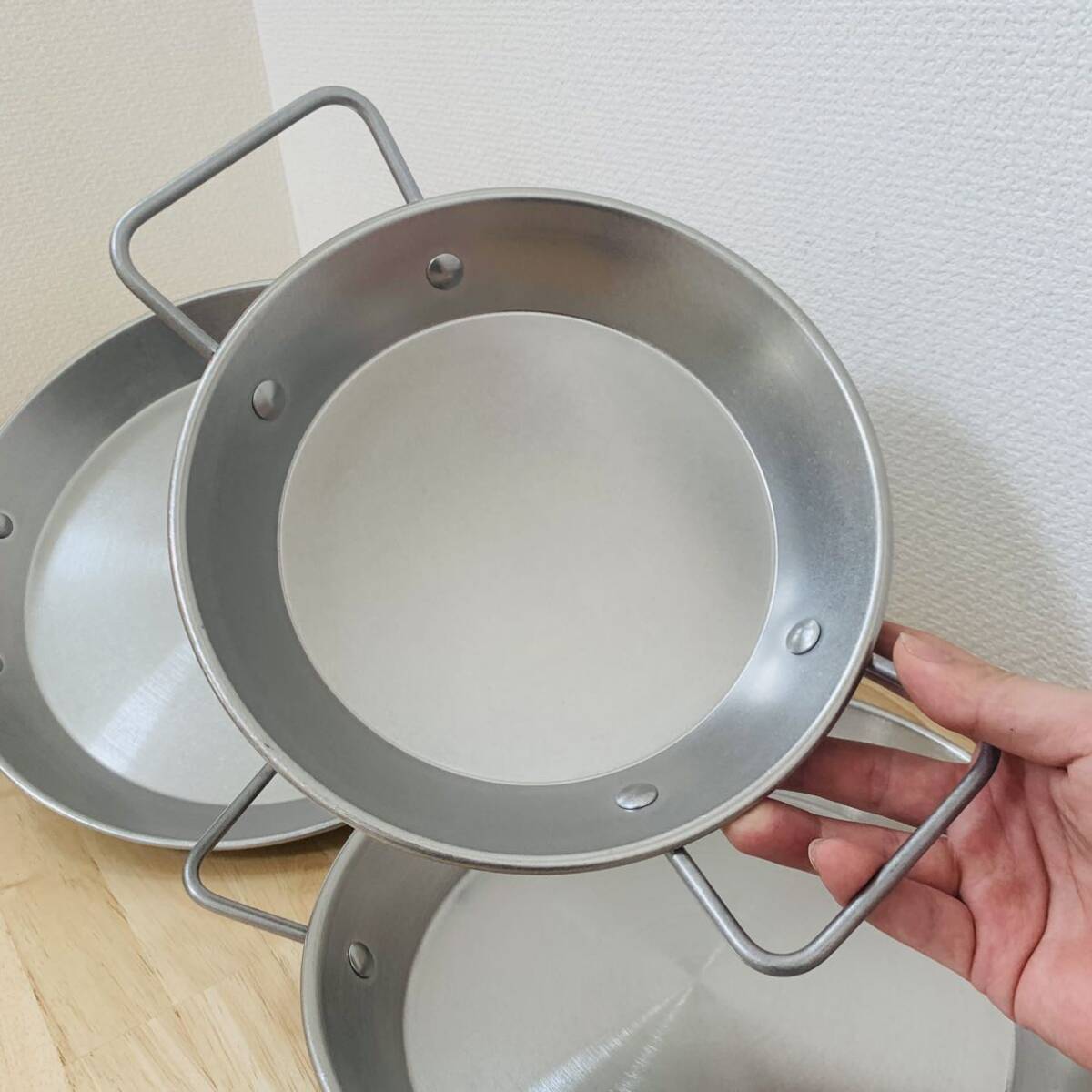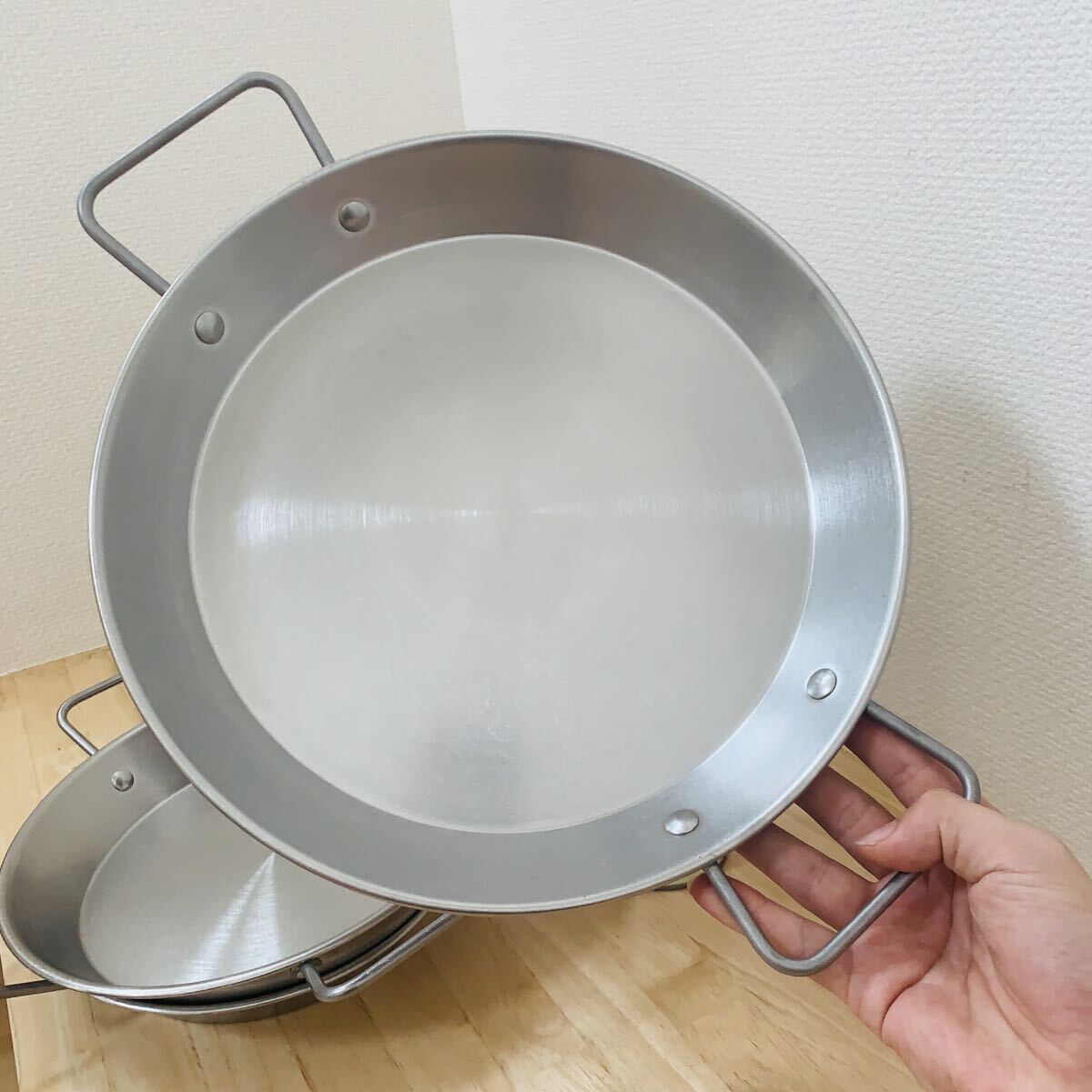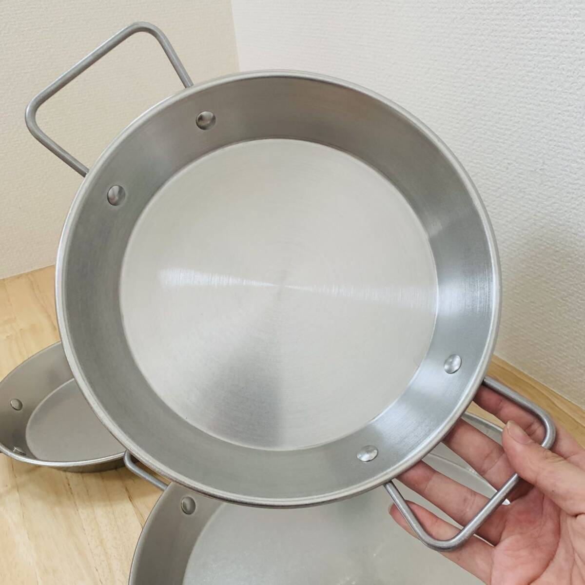 超高品質 ステンレス製 焼き鍋 お皿 3点セット 直火 HI 頑丈 アウトドア キャンプ用 野外登山 20cm 24cm 28cm