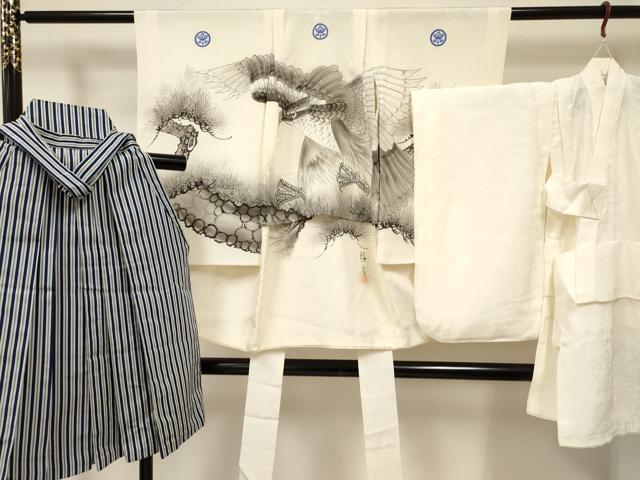 | 着物【正絹・五つ紋】・袴【化繊】のいずれも 状態は特に目立ったシミ汚れなどもなく大変良い状態です。 長襦袢【化繊】状態は接写画像のように右袖付に色移りがございますが その他特に目立ったシミ汚れなどもなく大変良い状態です。 大変上質な逸品になります。 お安く出品致しますので、是非この機会にいかがでしょうか? ※羽織・帯の付属がございません。