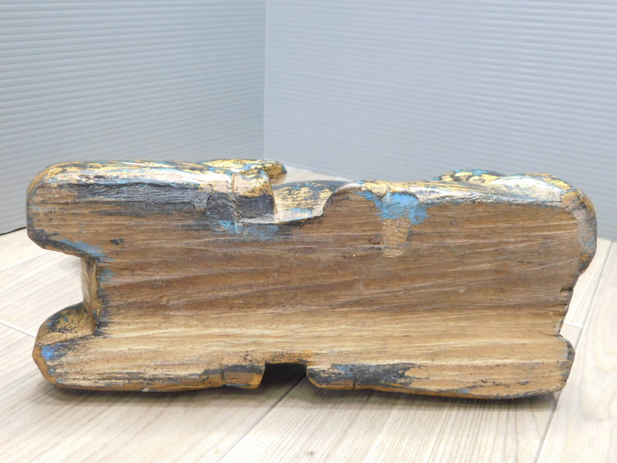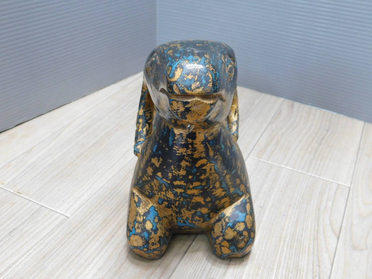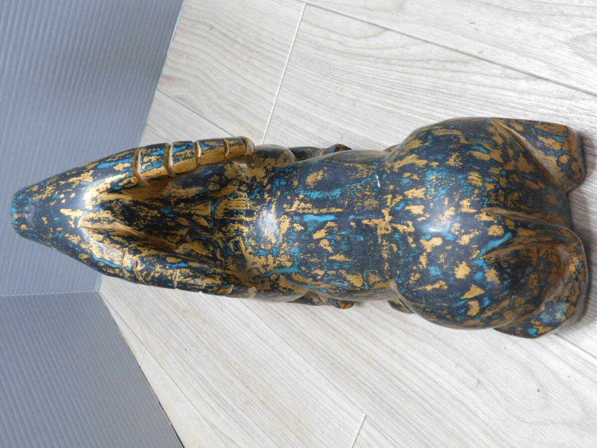 【リアルアンティーク】木彫 山羊 GOAT 金黒青 古美術品 オブジェ 置物/M409