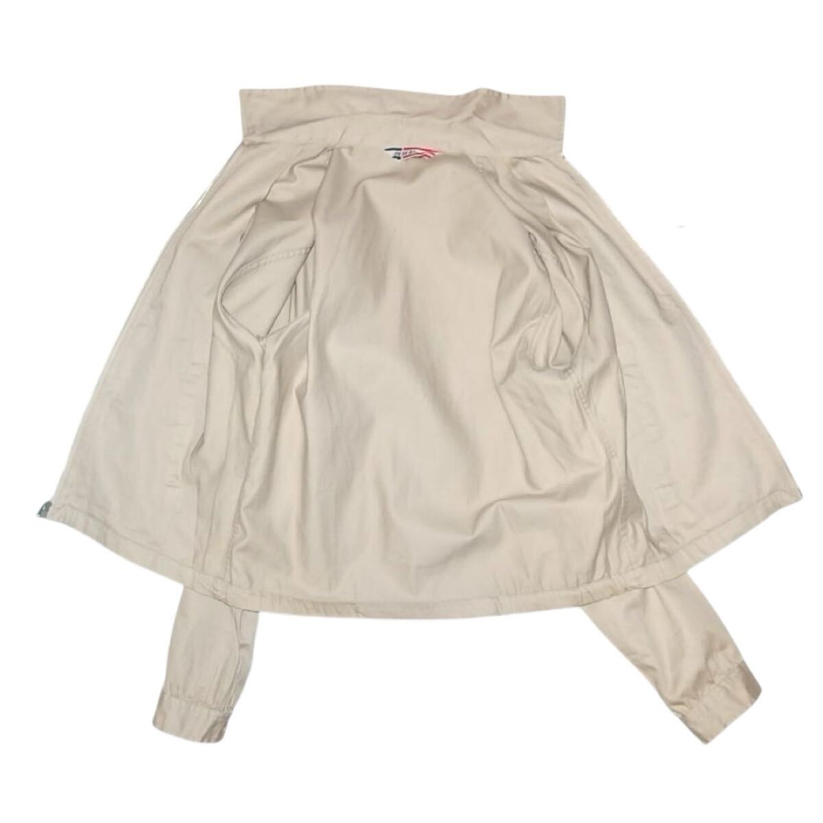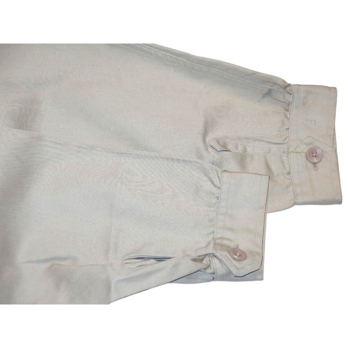 薄目のベージュ(ベージュっぽいオフホワイト?)です、ツイルのような目の詰まった生地で派手でない光沢がほのかに感じられます