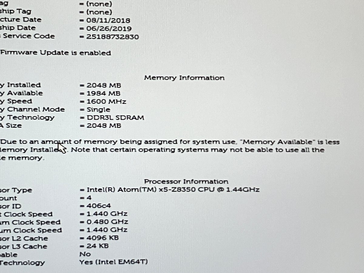 | CPU | Atom x5-Z8350 | コアシール (プロダクトシール) |