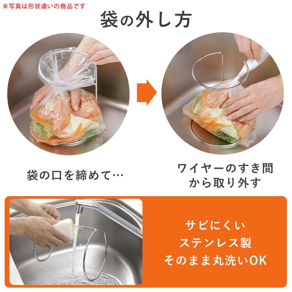 下村企販 ごみ箱 生ごみスタンド ポリ袋ホルダー 【日本製】 ステンレス 三角コーナー お手入れ簡単 シンプル 扇型 40047 燕三条
