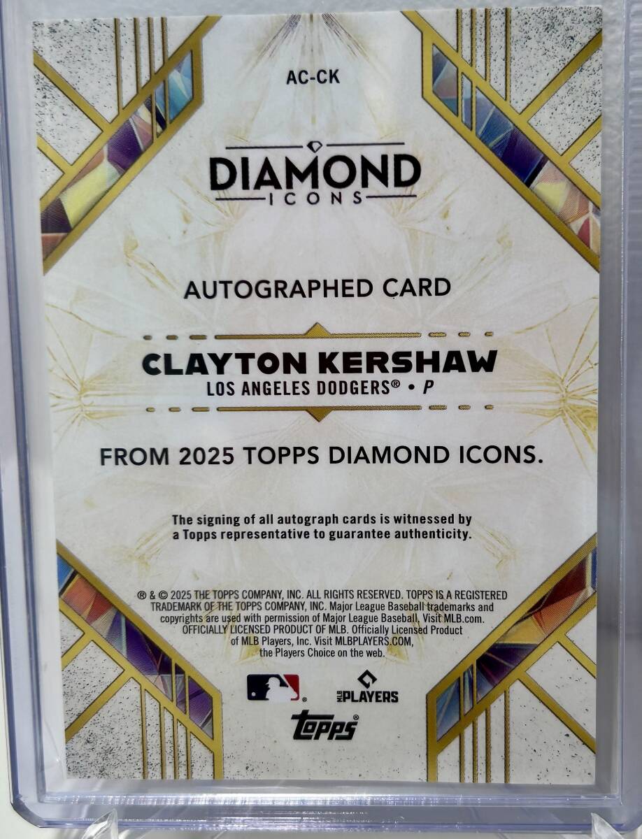 10月に発売されたばかりのtopps diamond icons 2025シリーズより、ドジャースの大投手カーショウ選手。