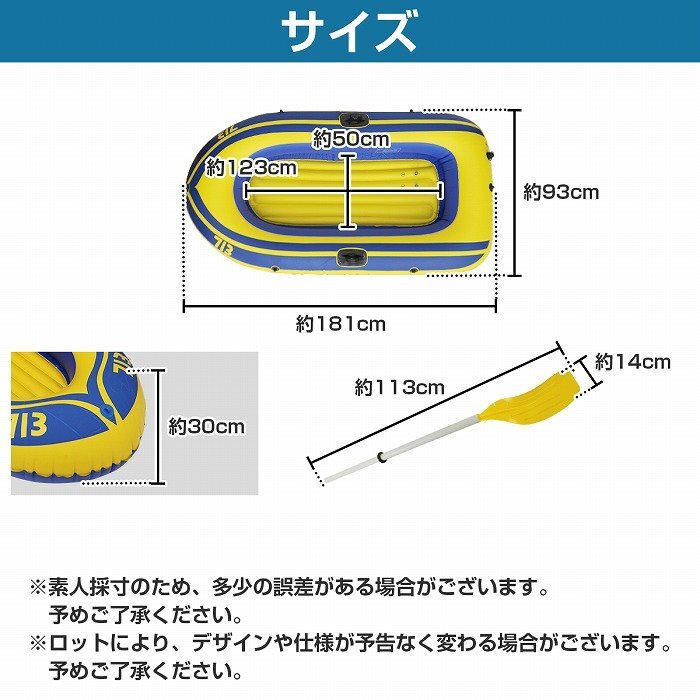 商 品 説 明お手頃プライスのゴムボート♪ポンプ・オールも付属している為、すぐに使える!