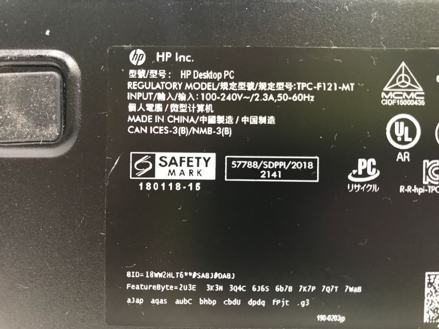 【製品名(型番)】 HP Desktop 190-0203jp