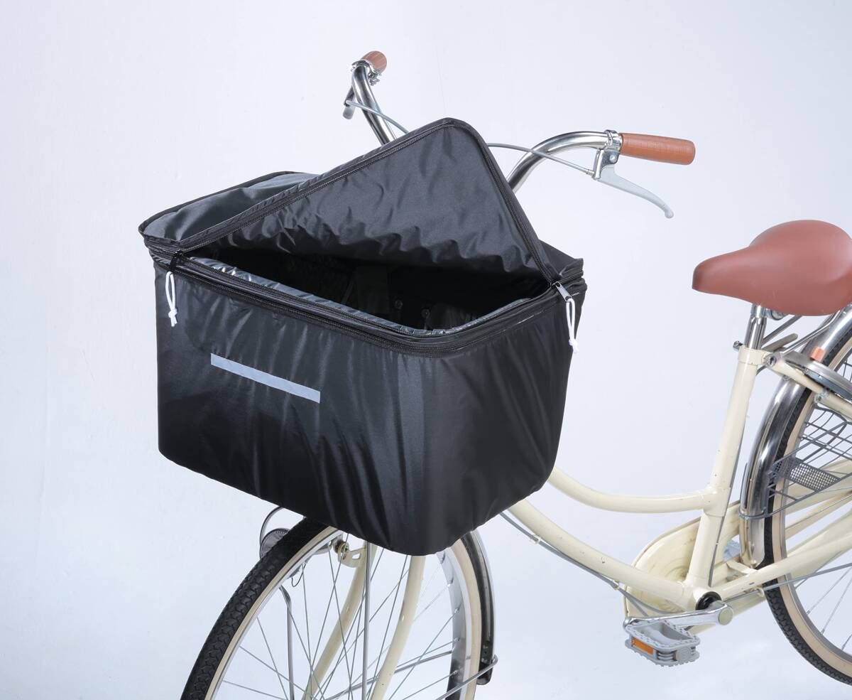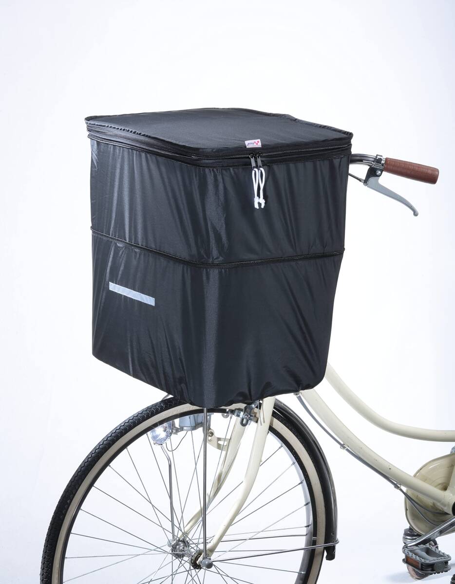本体・ファスナーの色もオールブラックで、男性にもご利用いただけるシンプルなデザイン。 道も安心の反射帯付き。 っぷり収納できる2段式カゴカバー。 の日も安心な防水&撥水加工。 開きで開閉楽々。背面伸縮ゴム入り。 ・夜道も安心の反射帯付き。 ・たっぷり収納できる2段式カゴカバー。 ・雨の日も安心な防水&撥水加工。 ・両開きで開閉楽々。 ・前ポケット付き。 ・背面伸縮ゴム入り。